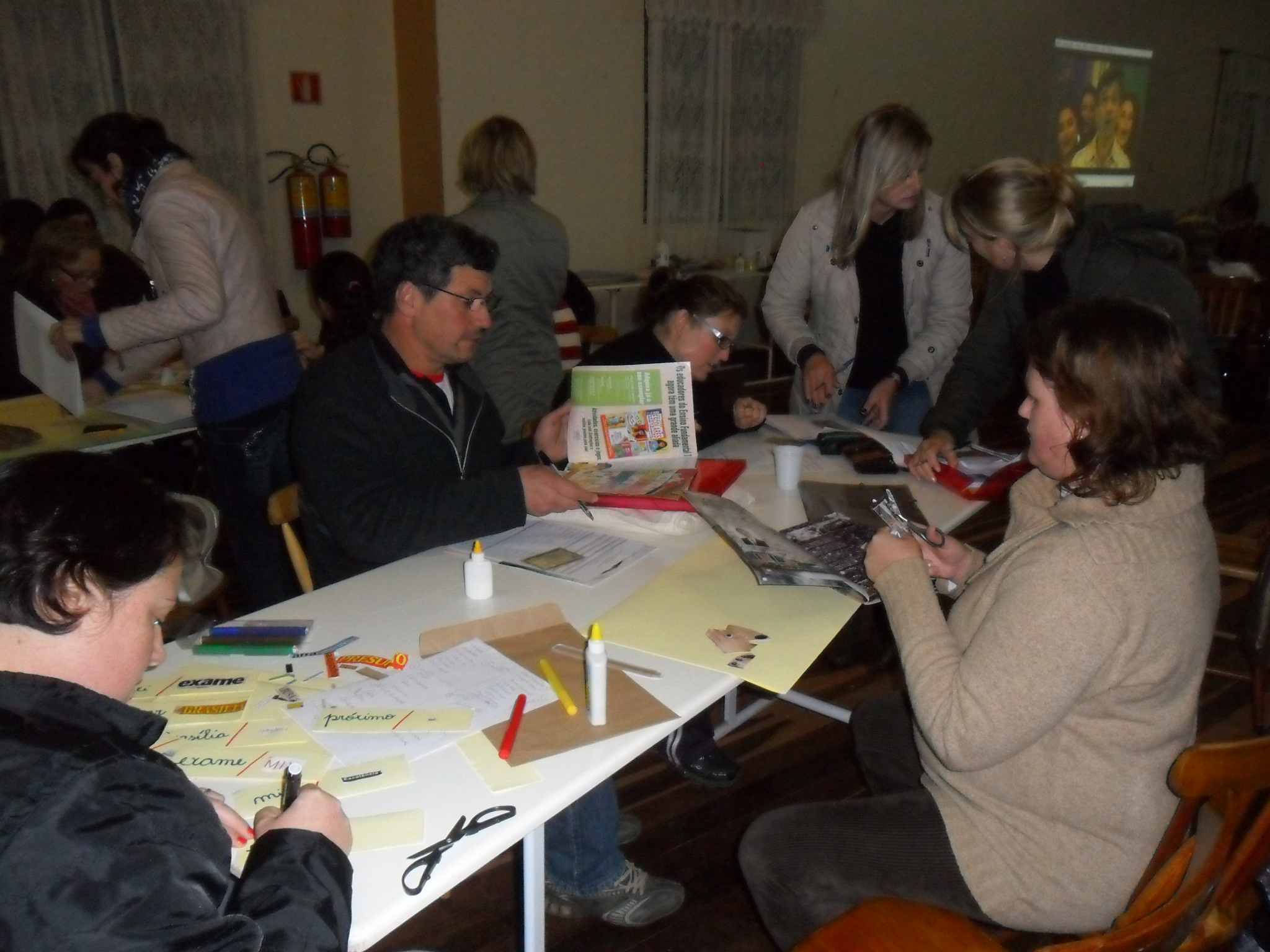 Nesses encontros mensais de oito ou doze horas, que acontecem aos sábados e em algumas noites, os professores lêem e debatem assuntos pertinentes à sua prática como alfabetizadores, e também trocam e socializam experiências pedagógicas, objetivando, desta forma, o propósito deste curso, já que o ciclo da alfabetização compreende os três primeiros anos do Ensino Fundamental, e não somente o 1º e o 2º ano, como era antes concebido.