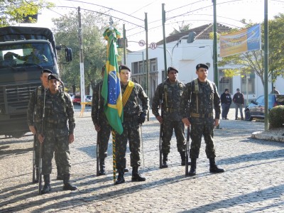 Antecipadamente ao ato, a Banda Marcial da 6ª Brigada de Santa Maria, Mestre Jorege, fez uma belíssima apresentação encantando não somente aos jovens que ali estavam para fazer o juramento, mas também a todas as autoridades e comunidade em geral que se aglomerou na praça para acompanhar a solenidade.