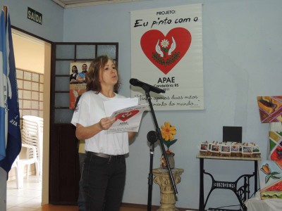 A artista plástica e colaboradora da APAE Cristina Lersh Mallmann também salientou da satisfação de trabalhar com os alunos em seu desenvolvimento do projeto “Eu pinto com o coração”. Cristine lembrou que não há dinheiro que possa pagar por esta satisfação.