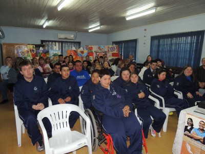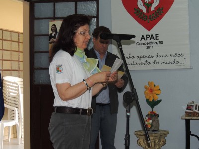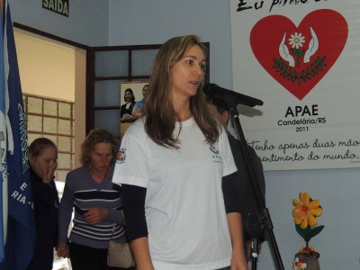 Com o tema “Desafiando os limites, diminuindo as diferenças”, que norteia as ações da APAE para a Semana da Pessoa com Deficiência Intelectual e Múltipla 2013, “tema este que nos remete ao espírito de luta e garra das pessoas com deficiência e também dos apaeanos que têm nestes supostos limites, a motivação para superação deles, o que conseqüentemente, vem diminuindo as diferenças sociais e o preconceito”, frisou a presidente da APAE de Candelária, Claudete de Aguiar, que apresentou um vídeo aos presentes sobre um cantor portador de necessidades especiais, corajoso e vencedor. Também em seu pronunciamento a diretora da APAE Cleidi Limberger Marion lembrou dos cuidados necessários para com as pessoas dependentes, além é claro de todo atenção e carinho. Explicou dos trabalhos que a APAE realiza, e também das grandes dificuldades que a instituição enfrenta no momento, especialmente com a falta de verbas.