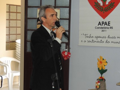O prefeito Paulo Butzge participou na manhã de quarta-feira da abertura da “Semana da Pessoa com Deficiência Intelectual e Múltipla” na sede da APAE (associação de Pais e Amigos dos Excepcionais) de Candelária. Além da abertura da semana, também foram apresentados os trabalhos da terceira etapa do projeto “Eu pinto com o Coração”, onde alunos da Apae auxiliados por voluntários e alguns artistas da cidade, como as artistas plásticas Cristine Lersh e Yona Pohl, que despendem do seu tempo para auxiliar a instituição.