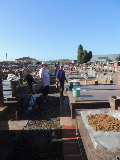 A primeira Dama de Candelária, Gabriela Butzge, iniciou na manhã desta segunda-feira um esforço concentrado de limpeza no Cemitério Público Municipal, visto que estamos nos aproximando da data consagrada aos mortos, no próximo dia 02, Dia de Finados. Com uma equipe de cinco pessoas, Gabriela acredita que até quarta-feira tudo esteja arrumado e limpo. “Mantemos o cemitério em bom estado todos os meses, mas com a chegada de finados, sabemos que o fluxo de pessoas aumenta consideravelmente, e para o conforto destas pessoas que tem entes queridos sepultados no Cemitério Municipal, estamos empenhados em deixar tudo da melhor maneira possível, facilitando os acessos, e mantendo a limpeza do campo sagrado”, enfatizou Gabriela que não só apenas coordena, mas coloca a “mão na massa”, juntando todo tipo de papéis e objetos que se encontram na parte interna do cemitério. Além da limpeza do cemitério, Gabriela esteve na semana passada iniciando a manutenção dos canteiros da Av Pereira Rego, como a retirada de folhas e plantas mortas, e replantio de algumas novas. Este trabalho, segundo Gabriela, “será realizado durante todas as semanas até que todos os canteiros tenham sido revisados e limpos” salientou a primeira dama.