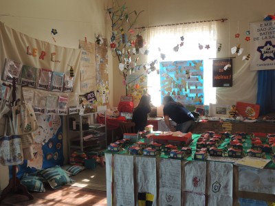 O salão da Comunidade Evangélica Sinodal de Candelária foi palco da Iª Pacto Mostra, mostra de Trabalhos das turmas de 1º a 3º ano das Escolas Pólo do Município no ultimo dia 09. Os professores participaram de uma formação dentro do PNAIC (Programa Nacional pela Alfabetização na Idade Certa) de 120 horas de forma presencial e inúmeras horas de trabalho aplicado em sala de aula para desenvolver um trabalho efetivo de alfabetização, onde o atendimento a todos os alunos fosse de forma criativa, lúdica, experimental e de autonomia, para o desenvolvimento de uma educação integral onde a metodologia de Projetos e Seqüência Didática possa ajudar o aluno em sua aprendizagem e que seu cotidiano se torne agradável e eficaz. As professoras apresentaram seu trabalho de forma muito especial, dando valor a cada detalhe que se tornou importante para todos os alunos. A satisfação das direções, coordenação e professores se tornaram visíveis pela emoção que todas deixaram transparecer. Acreditamos que a Educação seja o que temos de mais importante na vida e precisamos também acreditar na capacidade dos nossos alunos. O Programa “A União faz a Vida” se fez presente o tempo todo nas atividades realizadas pelos alunos e na preparação dos trabalhos em equipe pelos professores. Pensamos que a Cooperação e a Cidadania esteve presente também neste espaço. E para finalizar este dia especial, foi preparada uma surpresa pela Coordenadora Eliandra Behling e pelas Orientadoras Sheila Gass Schurer e Jaqueline H. de Freitas para homenagear as professoras que tanto se empenharam no trabalho do Pacto. Foram entregues pela família uma medalha “Destaque Alfabetizador PNAIC 2013”, um momento de pura emoção. O prefeito Paulo Butzge, incentivador do aperfeiçoamento do corpo docente participou do evento.