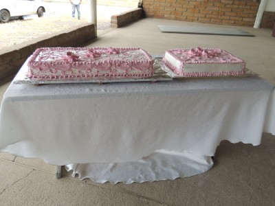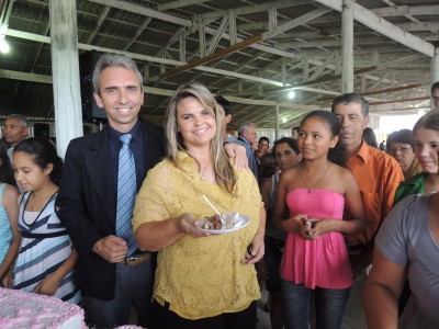 Após o casamento, a primeira dama Gabriela Butzge, juntamente com sua equipe, e da Assistência Social, que organizaram a cerimônia, desde a decoração até a festa, serviram aos noivos, padrinhos e convidados uma deliciosa torta, acompanhada de refrigerantes.