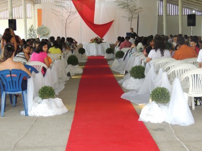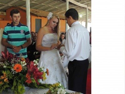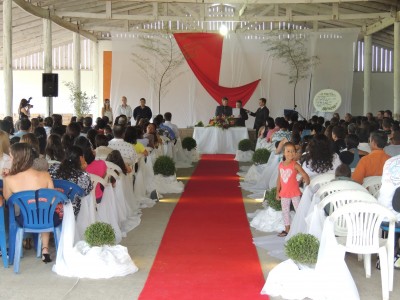 Cada casal foi chamado para que em frente ao oficial do cartório e do juiz de paz, fizessem os seus votos de matrimônio. Em seguida ao casamento civil, os pastores Eroin da Igreja Evangélica Assembléia de Deus e André Duarte da Igreja Evangélica Missionário Aliança do Avivamento, realizaram uma bela cerimônia, dando a benção e realizando o casamento pelas leis de Deus.