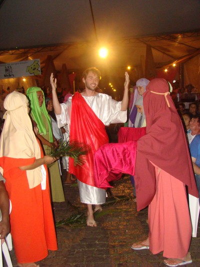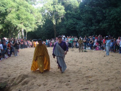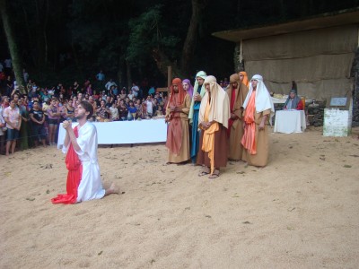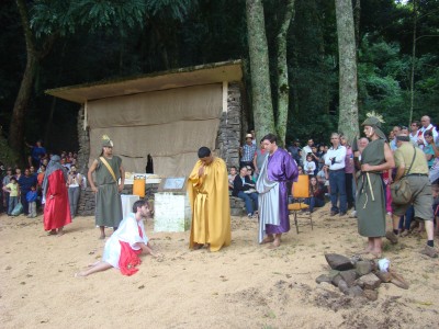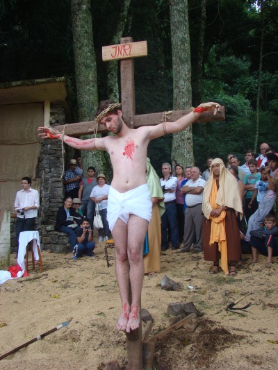 Candelária viveu mais uma vez a encenação da Paixão e Morte de Cristo na última sexta-feira santa, dentro da programação da 4ª Chococande, quando cerca de 20 atores do Grupo de Teatro Candelariense Cara e Coragem, levou a emoção a milhares de pessoas que se aglomeraram ao pé do Morro Botucaraí, para pagar promessas e acompanhar a tradicional apresentação. E foi de tamanha emoção, que não era difícil ver entre os espectadores, semblantes de tristeza e até mesmo lágrimas quando da encenação do calvário de Jesus.