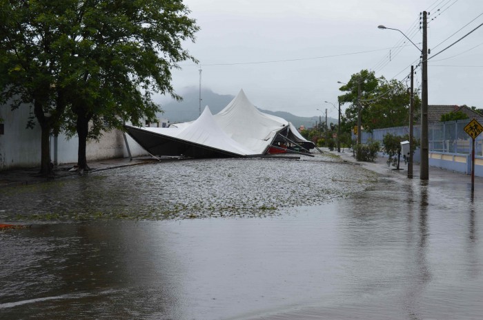 As chuvas e ventos fortes mais uma vez causaram estragos na região neste fim de semana, quando choveu muito acima da média e com ventos extremamente fortes, que acabaram destelhando casas e derrubando árvores. Segundo o Coordenador da Defesa Civil do Município, Tenente Euclides Rodrigues, “em algumas localidades chegou a chover 170 mm, um valor muito expressivo, mas, o maior prejuízo ficou por conta dos ventos que causaram grandes estragos em telhados, estruturas de galpões de estufas, derrubando inclusive postes”, informou o Tenente que esta percorrendo o município fazendo o levantamento, para que se possa avaliar a condição de ser decretado mais uma vez “Situação de Emergência” no município.
