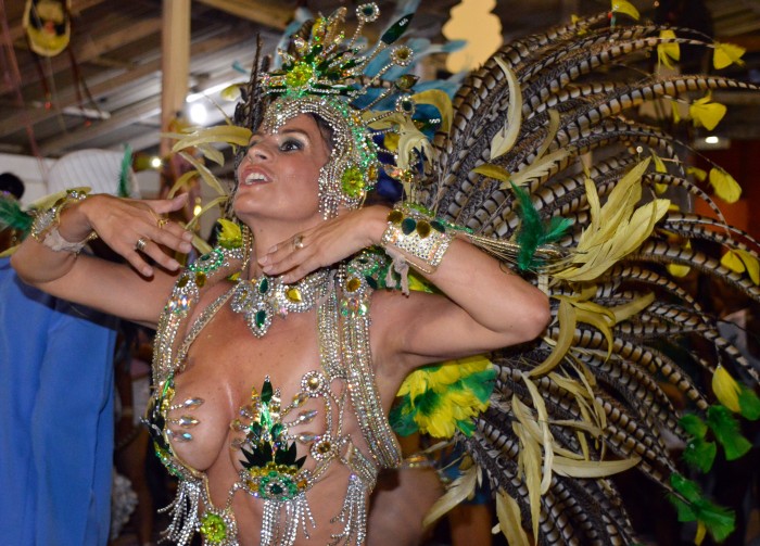 Na foto o trio de soberanas de Candelária com os passistas da Escola Império da Zona Norte de Santa Cruz do Sul
