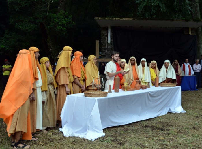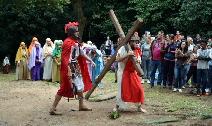 Candelária viveu mais uma vez na ultima sexta-feira, 14, a encenação da Paixão e Morte de Cristo, evento destaque dentro da programação da 7ª Chococande, quando cerca de 20 atores do Grupo de Teatro Candelariense Cara e Coragem, emocionaram a milhares de pessoas que se aglomeraram ao pé do Morro Botucaraí, para pagar promessas e acompanhar a tradicional apresentação. E foi de tamanha emoção, que não era difícil ver entre os espectadores, semblantes de tristeza e até mesmo lágrimas quando da encenação do calvário de Jesus.