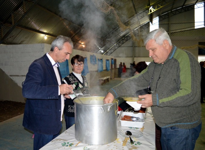 O prefeito Paulo Butzge e a primeira Dama Gabriela prestigiaram o evento, além do vice-prefeito Nestor Ellwanger, dos secretários da Fazenda, Sônia Pereira e da Administração, Dionatan Tavares da Silva e do Chefe de Gabinete do Prefeito Paulo Butzge, Lucas Michels, do chefe do escritório local da Emater, Sanderlei Pereira, da simpatia Rural Lucia Selenita Morsh e da simpatia Jovem Rural, Fernanda Schuck, entre outras autoridades. Apesar da chuva e do frio terem espantado muita gente, o publico foi bom, segundo Romilda Bernardi, presidente do Grupo de Mulheres Unidas da Serra, que organizou e produziu o evento, em parceria com a Prefeitura Municipal de Candelária, através da Secretaria de Turismo, Cultura e Esporte, da Emater/Ascar e com apoio da Afubra e Sicredi, e além de aproveitar as delicias culinárias, ainda pode apreciar as atrações artísticas culturais apresentadas, como a Invernada Mirim do CTG Sentinela dos Pampas, dos cantores Rodrigo Neto e Lucas Ferreira Sampaio.